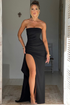 Feel like a siren in Jaqueline, our timeless maxi made in luxury double stretch crepe that moulds to your body for a heavenly fit. With a strapless neckline and ruched detailing, this showstopping look has a thigh high split and drape ruffle to one side.